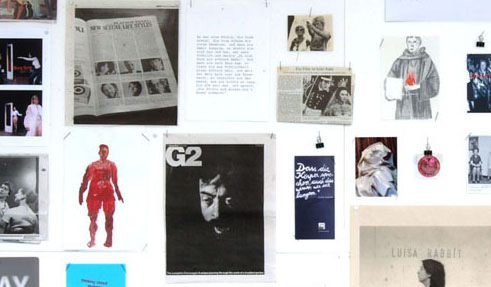 The three posters that are called "A READER - a visual archive" are first of all a visual work. The idea is to show and create a field of desire through a combination of images and other materials that exists only in an in-between, that has to constantly re-install itself in the fissures and gaps that any discourse leaves. The posters also represent a realm of politics that deal with the development of strategies to denaturalise normative concepts of identity, bodies, sex and gender. Another aspect of the work is its function as a (portable) context for my work in general and as a queer and feminist fanzine in particular.